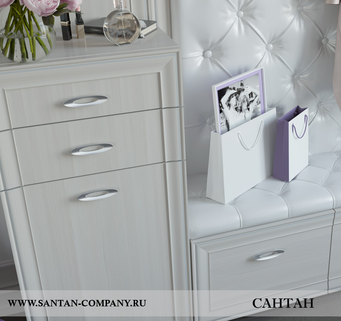 В серии предлагается большой выбор пеналов с различным наполнением, шкафов и готовых модулей, совмещающих вешалки и отделения с полками. В серии используется ручка скоба 96 сатин светлый металл.